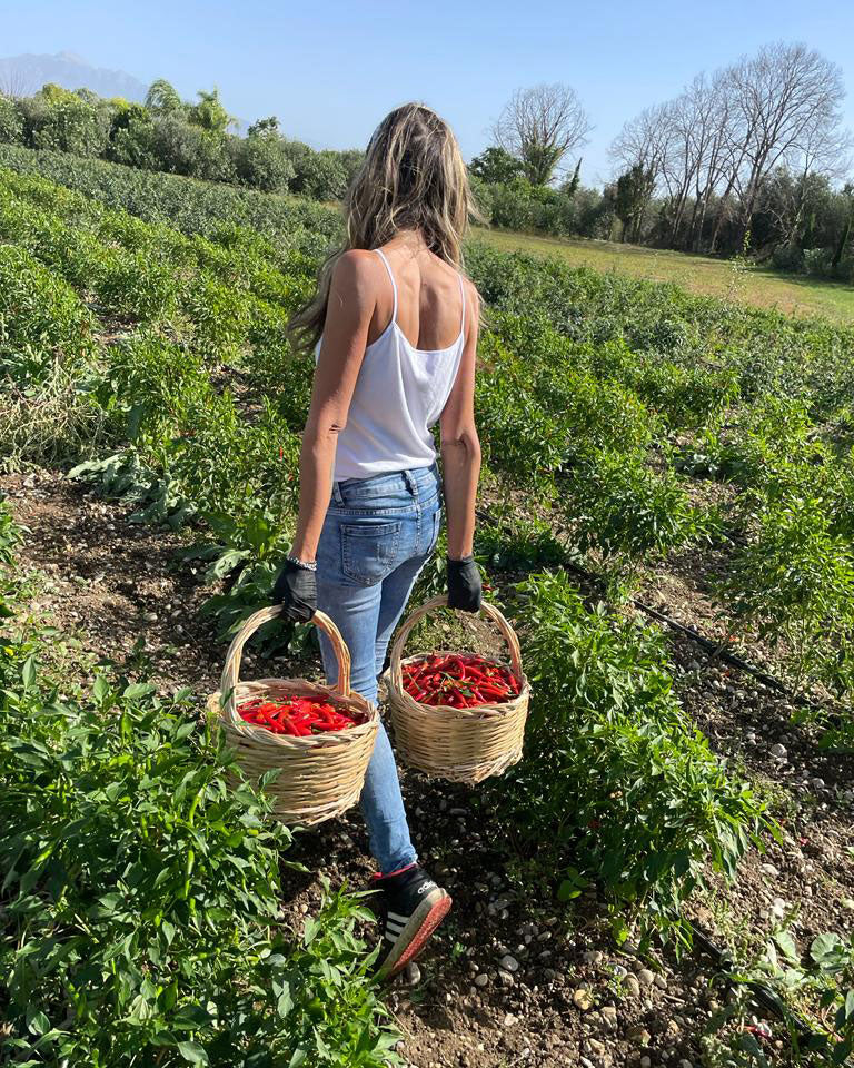 En Italie, le piment est traditionnellement cultivé dans des régions ensoleillées, cueilli à la main et souvent séché à l'air ou conservé dans de l'huile d'olive afin de préserver son piquant et son arôme.